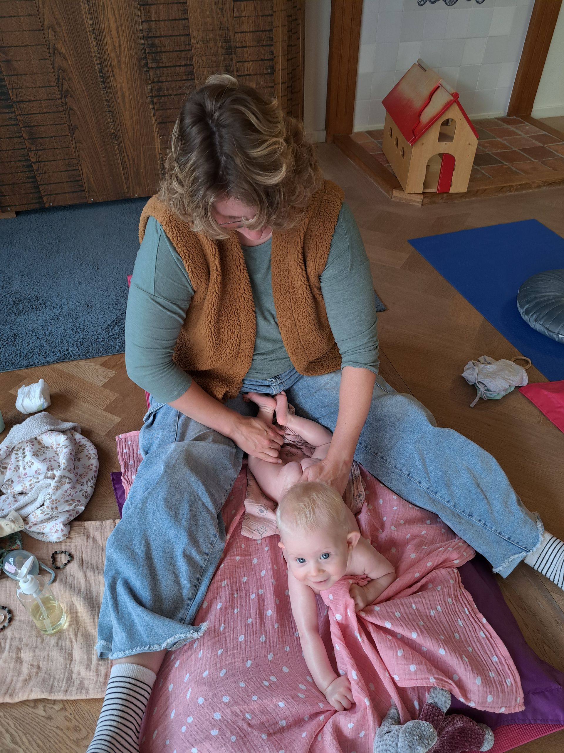 - Ik heb de babymassage themacursus gevolgd bij Olijfje en dat is goed bevallen! Ik heb een aantal thema's kunnen bespreken waar ik mee zat en alle massagetechnieken geoefend. Ik vind het super belangrijk om ons jongetje te masseren zodat hij beter in zijn vel zit en de energie optimaal door zijn lijfje kan stromen. Volwassenen hebben ook massages nodig dus een baby natuurlijk ook! -