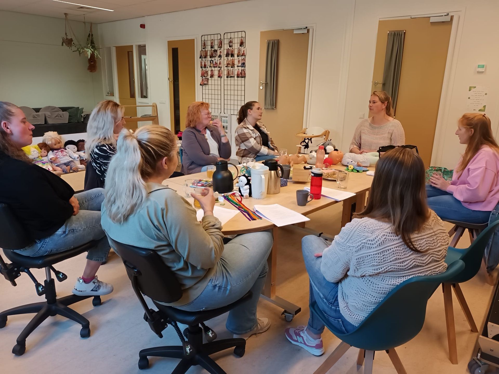Thema avond bij kinderopvang de Welpjes. Reactie van de aanwezigen: fijne sfeer, leuke opzet, fijn om ouders en leidsters zo bij elkaar te brengen. Christa is fijn om naar de luisteren. Leuk om ook actief met de pop bezig te gaan.
